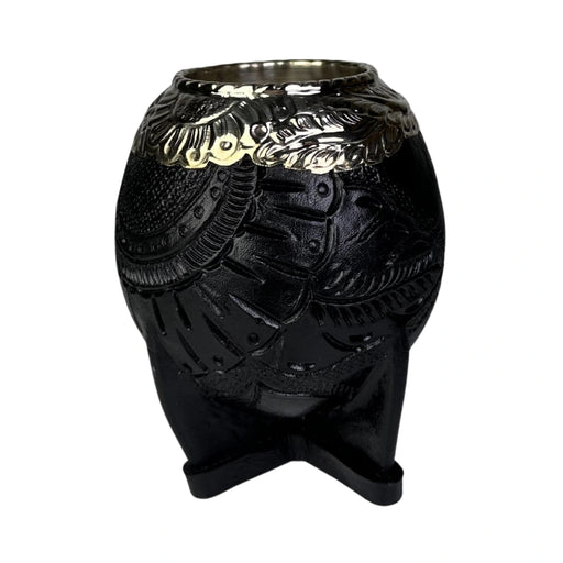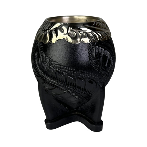 [ACORDEON:DESCRIPCION]🧉 Mate Torpedo Negro – Calabaza Artesanal Premium con Virola Cincelada Recortada Este mate torpedo de calabaza premium en col...