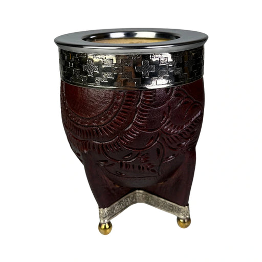 Ver todos los detallesMate Imperial Roma Con Cuero Labrado Base Y Virola De Alpaca Con Bombilla